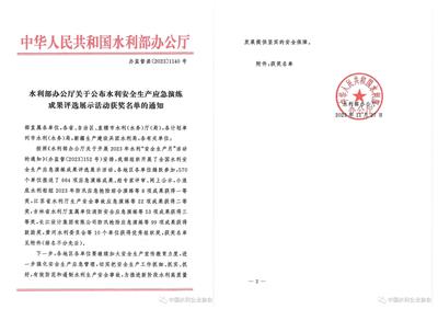 近日,水利部辦公廳公布了全國水利安全生產應急演練成果評選展示活動獲獎名單,集團公司聯合所屬工程局公司、廈漳水資...